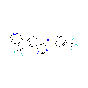 C1=CC(=CC=C1C(F)(F)F)NC2=NC=NC3=C2C=CC(=C3)C4=C(C=CN=C4<br />)C(F)(F)F