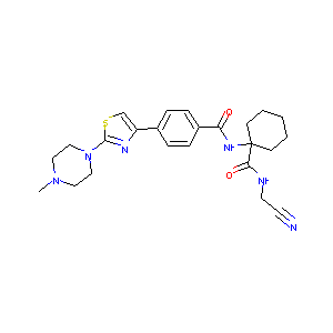 CN1CCN(CC1)C2=NC(=CS2)C3=CC=C(C=C3)C(=O)NC4(CCCCC4)C(=O<br />)NCC#N