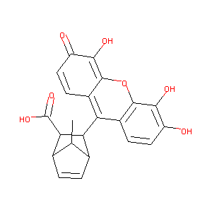 CC1C2C=CC1C(C2C3=C4C=CC(=O)C(=C4OC5=C3C=CC(=C5O)O)O)C(=<br />O)O
