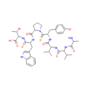 CC(C)C(C(=O)NC(C(C)C)C(=O)NC(CC1=CC=C(C=C1)O)C(=O)N2CCC<br />C2C(=O)NC(CC3=CNC4=CC=CC=C43)C(=O)NC(C(C)O)C(=O)O)NC(=O<br />)C(C)N