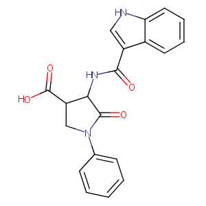 InChI=1S/C20H17N3O4/c24-18(14-10-21-16-9-5-4-8-13(14)16)22-17-15(20(26)27)11-23(19(17)25)12-6-2-1-3-7-12/h1-10,15,17,21H,11H2,(H,22,24)(H,26,27)
