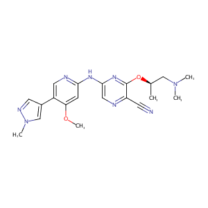 InChI=1S/C20H24N8O2/c1-13(11-27(2)3)30-20-16(7-21)22-10-19(26-20)25-18-6-17(29-5)15(9-23-18)14-8-24-28(4)12-14/h6,8-10,12-13H,11H2,1-5H3,(H,23,25,26)/t13-/m1/s1