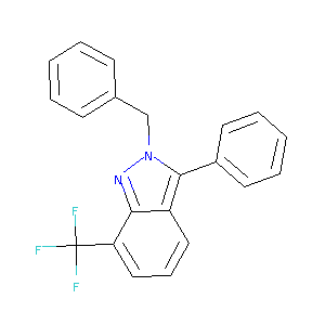 1S/C21H15F3N2/c22-21(23,24)18-13-7-12-17-19(18)25-26(14-15-8-3-1-4-9-15)20(17)16-10-5-2-6-11-16/h1-13H,14H2