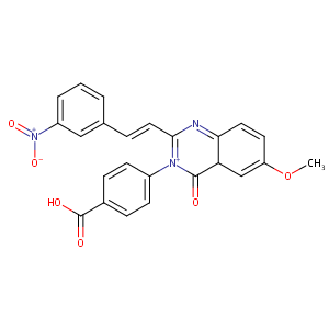 InChI=1S/C24H17N3O6/c1-33-19-10-11-21-20(14-19)23(28)26(17-8-6-16(7-9-17)24(29)30)22(25-21)12-5-15-3-2-4-18(13-15)27(31)32/h2-14,20H,1H3/p+1/b12-5+