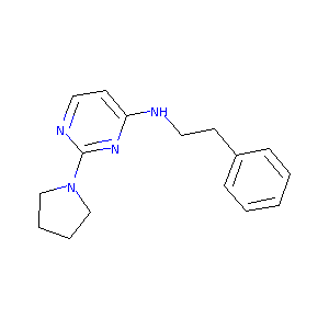 1S/C16H20N4/c1-2-6-14(7-3-1)8-10-17-15-9-11-18-16(19-15)20-12-4-5-13-20/h1-3,6-7,9,11H,4-5,8,10,12-13H2,(H,17,18,19)