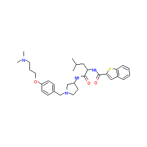 CC(C)CC(C(=O)NC1CCN(C1)CC2=CC=C(C=C2)OCCCN(C)C)NC(=O)C3<br />=CC4=CC=CC=C4S3