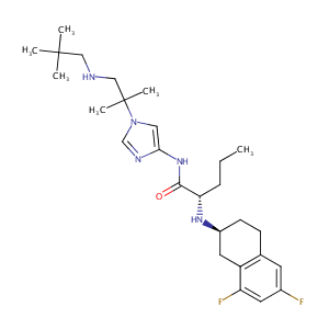 InChI=1S/C27H41F2N5O/c1-7-8-23(32-20-10-9-18-11-19(28)12-22(29)21(18)13-20)25(35)33-24-14-34(17-31-24)27(5,6)16-30-15-26(2,3)4/h11-12,14,17,20,23,30,32H,7-10,13,15-16H2,1-6H3,(H,33,35)/t20-,23-/m0/s1