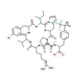 CCC(C)C(C(=O)NC(CC1=CN=CN1)C(=O)N2CCCC2C(=O)NC(CC3=CC=C<br />(C=C3)C4(N=N4)C(F)(F)F)C(=O)O)NC(=O)C(CC5=CC=C(C=C5)O)N<br />C(=O)C(C(C)C)NC(=O)C(CCCN=C(N)N)NC(=O)CNC