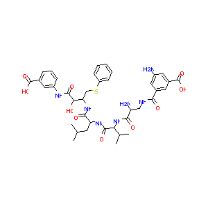 CC(C)CC(C(=O)NC(CSC1=CC=CC=C1)C(C(=O)NC2=CC=CC(=C2)C(=O<br />)O)O)NC(=O)C(C(C)C)NC(=O)C(CNC(=O)C3=CC(=CC(=C3)N)C(=O)<br />O)N