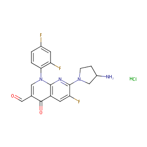 c12n(cc(c(=O)c1cc(c(n2)N1CC(CC1)N)F)C=O)c1c(cc(cc1)F)F.<br />Cl