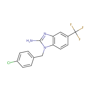 c1(n(c2c(n1)cc(C(F)(F)F)cc2)Cc1ccc(Cl)cc1)N
