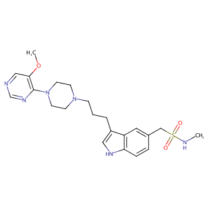 S(=O)(=O)(Cc1cc2c(c[nH]c2cc1)CCCN1CCN(c2c(OC)cncn2)CC1)<br />NC
