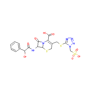 C1C(=C(N2C(S1)C(C2=O)NC(=O)C(C3=CC=CC=C3)O)C(=O)O)CSC4=<br />NN=NN4CS(=O)(=O)O