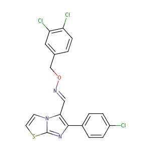 InChI=1S/C19H12Cl3N3OS/c20-14-4-2-13(3-5-14)18-17(25-7-8-27-19(25)24-18)10-23-26-11-12-1-6-15(21)16(22)9-12/h1-10H,11H2/b23-10+