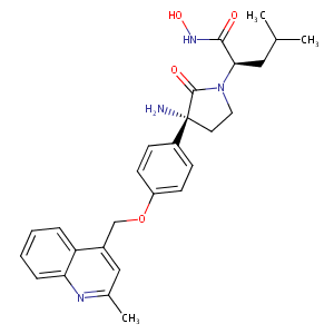 InChI=1S/C27H32N4O4/c1-17(2)14-24(25(32)30-34)31-13-12-27(28,26(31)33)20-8-10-21(11-9-20)35-16-19-15-18(3)29-23-7-5-4-6-22(19)23/h4-11,15,17,24,34H,12-14,16,28H2,1-3H3,(H,30,32)/t24-,27-/m1/s1