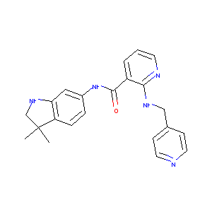 CC1(CNC2=C1C=CC(=C2)NC(=O)C3=C(N=CC=C3)NCC4=CC=NC=C4)C.<br />OP(=O)(O)OP(=O)(O)O