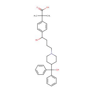 Carboxyterfenadine; Fexofendine; Terfenadine acid metabolite; Terfenadine carboxylate; F 9427; MDL 16455; Allegra (TN); Fastofen (TN); Fexofenadine (INN); Fexofenadine [INN:BAN]; Telfast (TN); Terfenadine-COOH; Terfenidine carboxylate, MDL 16455; Tilfur (TN); 2-[4-(1-hydroxy-4-{4-[hydroxy(diphenyl)methyl]piperidin-1-yl}butyl)phenyl]-2-methylpropanoic acid; 2-[4-[1-hydroxy-4-[4-[hydroxy(diphenyl)methyl]piperidin-1-yl]butyl]phenyl]-2-methylpropanoic acid; 4-(1-Hydroxy-4-(4-(hydroxydiphenylmethyl)-1-piperidinyl)butyl)-alpha,alpha-dimethylbenzeneacetic acid