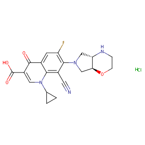 C1N(C[C@H]2[C@H]1OCCN2)c1c(cc2c(c1C#N)n(cc(c2=O)C(=O)O)<br />C1CC1)F.Cl