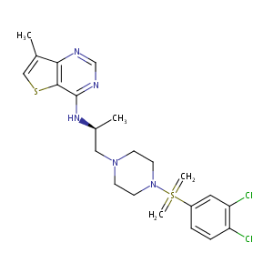 InChI=1S/C22H27Cl2N5S2/c1-15-13-30-21-20(15)25-14-26-22(21)27-16(2)12-28-7-9-29(10-8-28)31(3,4)17-5-6-18(23)19(24)11-17/h5-6,11,13-14,16H,3-4,7-10,12H2,1-2H3,(H,25,26,27)/t16-/m0/s1