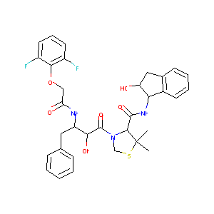 CC1(C(N(CS1)C(=O)C(C(CC2=CC=CC=C2)NC(=O)COC3=C(C=CC=C3F<br />)F)O)C(=O)NC4C(CC5=CC=CC=C45)O)C