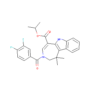 CC(C)OC(=O)C1=CN(CC(C2=C1NC3=CC=CC=C32)(C)C)C(=O)C4=CC(<br />=C(C=C4)F)F