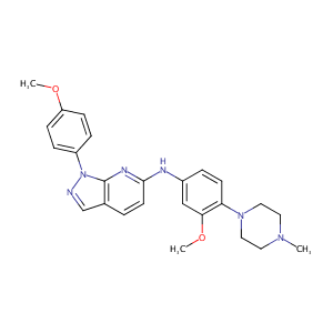 InChI=1S/C25H28N6O2/c1-29-12-14-30(15-13-29)22-10-5-19(16-23(22)33-3)27-24-11-4-18-17-26-31(25(18)28-24)20-6-8-21(32-2)9-7-20/h4-11,16-17H,12-15H2,1-3H3,(H,27,28)