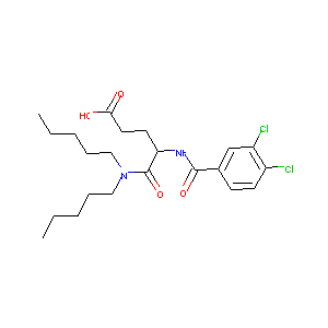 CCCCCN(CCCCC)C(=O)C(CCC(=O)[O-])NC(=O)C1=CC(=C(C=C1)Cl)<br />Cl