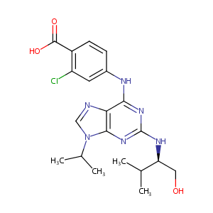 InChI=1S/C20H25ClN6O3/c1-10(2)15(8-28)24-20-25-17(16-18(26-20)27(9-22-16)11(3)4)23-12-5-6-13(19(29)30)14(21)7-12/h5-7,9-11,15,28H,8H2,1-4H3,(H,29,30)(H2,23,24,25,26)/t15-/m0/s1