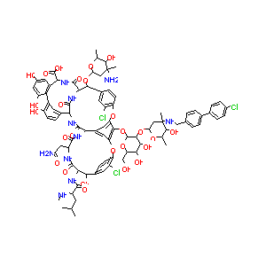 CC1C(C(CC(O1)OC2C3C(=O)NC(C4=CC(=CC(=C4C5=C(C=CC(=C5)C(<br />C(=O)N3)NC(=O)C6C7=CC(=C(C(=C7)OC8=C(C=C(C=C8)C(C(C(=O)<br />NC(C(=O)N6)CC(=O)N)NC(=O)C(CC(C)C)NC)O)Cl)OC9C(C(C(C(O9<br />)CO)O)O)OC1CC(C(C(O1)C)O)(C)NCC1=CC=C(C=C1)C1=CC=C(C=C1<br />)Cl)OC1=C(C=C2C=C1)Cl)O)O)O)C(=O)O)(C)N)O