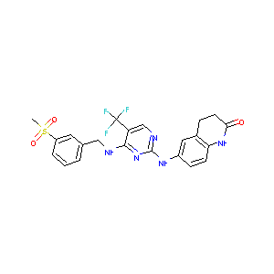 CS(=O)(=O)C1=CC=CC(=C1)CNC2=NC(=NC=C2C(F)(F)F)NC3=CC4=C<br />(C=C3)NC(=O)CC4
