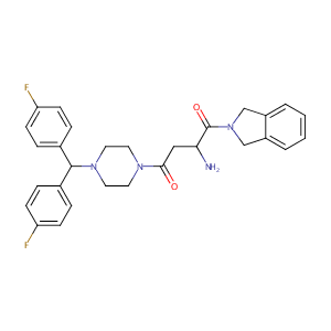 InChI=1S/C29H30F2N4O2/c30-24-9-5-20(6-10-24)28(21-7-11-25(31)12-8-21)34-15-13-33(14-16-34)27(36)17-26(32)29(37)35-18-22-3-1-2-4-23(22)19-35/h1-12,26,28H,13-19,32H2
