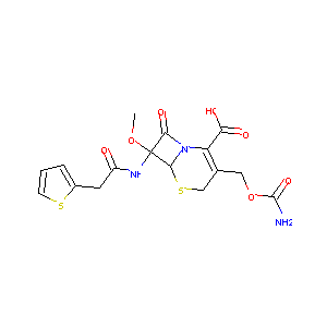 Mefoxin; Mefoxitin; CEFOXITIN SODIUM; Cefoxitin sodium salt; Mefoxin (TN); Cefoxitin (USAN/INN); Cefoxitin sodium (JAN/USP); (6R,7S)-3-(carbamoyloxymethyl)-7-methoxy-8-oxo-7-[(2-thiophen-2-ylacetyl)amino]-5-thia-1-azabicyclo[4.2.0]oct-2-ene-2-carboxylate; (6R,7S)-3-(carbamoyloxymethyl)-7-methoxy-8-oxo-7-[(2-thiophen-2-ylacetyl)amino]-5-thia-1-azabicyclo[4.2.0]oct-2-ene-2-carboxylic acid; (6R,7S)-3-[(carbamoyloxy)methyl]-7-methoxy-8-oxo-7-[(2-thienylacetyl)amino]-5-thia-1-azabicyclo[4.2.0]oct-2-ene-2-carboxylate; (6R,7S)-3-{[(aminocarbonyl)oxy]methyl}-7-(methyloxy)-8-oxo-7-[(2-thienylacetyl)amino]-5-thia-1-azabicyclo[4.2.0]oct-2-ene-2-carboxylic acid; 3-[(carbamoyloxy)methyl]-7alpha-methoxy-7beta-[(2-thienylacetyl)amino]-3,4-didehydrocepham-4-carboxylate; 3-[(carbamoyloxy)methyl]-7alpha-methoxy-7beta-[(thiophen-2-yl)acetamido]-3,4-didehydrocepham-4-carboxylic acid