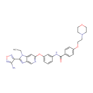 InChI=1S/C29H30N8O5/c1-2-37-24-17-25(31-18-23(24)33-28(37)26-27(30)35-42-34-26)41-22-5-3-4-20(16-22)32-29(38)19-6-8-21(9-7-19)40-15-12-36-10-13-39-14-11-36/h3-9,16-18H,2,10-15H2,1H3,(H2,30,35)(H,32,38)