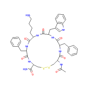CC(=O)NC1CSSCC(NC(=O)C(NC(=O)C(NC(=O)C(NC(=O)C(NC1=O)CC<br />2=CC=CC=C2)CC3=CNC4=CC=CC=C43)CCCCN)CC5=CC=CC=C5)C(=O)N