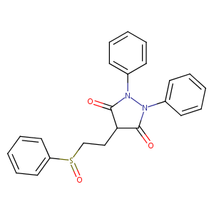 Anturan; Anturane; Anturanil; Anturano; Anturen; Anturidin; Diphenylpyrazone; Enturan; Enturen; Novopyrazone; Sulfinpirazona; Sulfinpyrazine; Sulfinpyrazon; Sulfinpyrazonum; Sulfoxyphenylpyrazolidin; Sulfoxyphenylpyrazolidine; Sulphinpyrazone; Apo Sulfinpyrazone; Apotex Brand of Sulfinpyrazone; Novartis Brand of Sulfinpyrazone; Nu Pharm Brand of Sulfinpyrazone; Nu Sulfinpyrazone; G 28315; Anturane (TN); Apo-Sulfinpyrazone; G 28,315; Nu-Pharm Brand of Sulfinpyrazone; Nu-Sulfinpyrazone; Sulfinpirazona [INN-Spanish]; Sulfinpyrazone (SPZ); Sulfinpyrazonum [INN-Latin]; USAF GE-13; Sulfinpyrazone [USAN:INN:JAN]; Sulfinpyrazone (JP15/USP/INN); (+/-)-SULFINPYRAZONE; 1,2-Diphenyl-3,5-dioxo-4-(2'-phenyl-sulfinyl-aethyl)-pyrazolidin; 1,2-Diphenyl-3,5-dioxo-4-(2'-phenyl-sulfinyl-aethyl)-pyrazolidin [German]; 1,2-Diphenyl-3,5-dioxo-4-(2-phenylsulfinylethyl) pyrazolidine; 1,2-Diphenyl-3,5-dioxo-4-(2-phenylsulfinylethyl)pyrazolidine; 1,2-Diphenyl-4-(2'-phenylsulfinethyl)-3,5-pyrazolidinedione; 1,2-Diphenyl-4-(2-(phenylsulfinyl)ethyl)-3,5-pyrazolidinedione; 1,2-Diphenyl-4-(phenylsulfinylethyl)-3,5-pyrazolidinedione; 1,2-Diphenyl-4-[2-(phenylsulfinyl)ethyl-3,5-pyrazolidinedione; 1,2-diphenyl-4-[2-(phenylsulfinyl)ethyl]pyrazolidine-3,5-dione; 4-(2-Benzenesulfinylethyl)-1,2-diphenylpyrazolidine-3,5-dione; 4-(Phenylsulfoxyethyl)-1,2-diphenyl-3,5-pyrazolidinedione; 4-[2-(benzenesulfinyl)ethyl]-1,2-diphenylpyrazolidine-3,5-dione