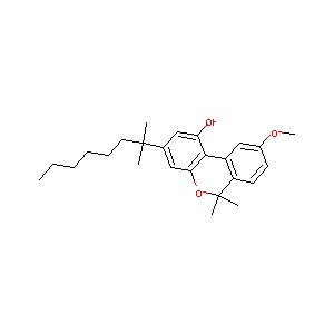 CCCCCCC(C)(C)C1=CC2=C(C(=C1)O)C3=C(C=CC(=C3)OC)C(O2)(C)<br />C