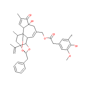 CC1CC2(C3C4C1(C5C=C(C(=O)C5(CC(=C4)COC(=O)CC6=CC(=C(C(=<br />C6)I)O)OC)O)C)OC(O3)(O2)CC7=CC=CC=C7)C(=C)C