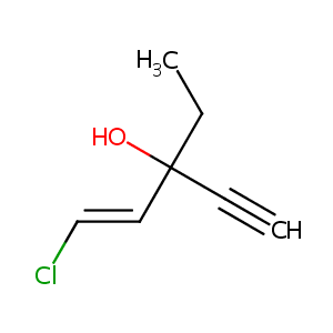 Alvinol; Arvynol; Etchlorvinolo; Etclorvinol; Ethchlorovynol; Ethchlorvinol; Ethchlorvinyl; Ethchlorvynolum;Ethclorvynol; Ethochlorvynol; Ethychlorvynol; Normonson; Normosan; Normoson; Nostel; Nromoson; Placidil; Placidyl; Roeridorm; Serenesil; Serenil; Serensil; Serensiloline; A 71; Aethyl-chlorvynol; Beta-Chlorovinyl ethyl ethynyl carbinol; Beta-Chlorvinyl ethyl ethynyl carbinol; Etclorvinol [INN-Spanish]; Ethchlorvynolum [INN-Latin]; Ethyl beta-chlorovinyl ethynyl carbinol; Placidyl (TN); Ethchlorvynol [USAN:INN:BAN]; Ethchlorvynol (JAN/USP/INN); (E)-1-chloro-3-ethylpent-1-en-4-yn-3-ol; 1-Chloro-3-ethyl-1-penten-4-yn-3-ol; 1-Chloro-3-ethylpent-1-4-yn-3-ol; 1-chloro-3-ethylpent-1-en-4-yn-3-ol; 3-(beta-Chlorovinyl)-1-pentyn-3-ol; 5-Chloro-3-ethylpent-1-yn-4-en-3-ol