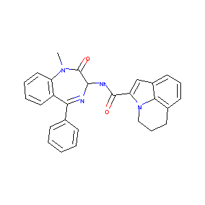 CN1C2=CC=CC=C2C(=NC(C1=O)NC(=O)C3=CC4=C5N3CCCC5=CC=C4)C<br />6=CC=CC=C6