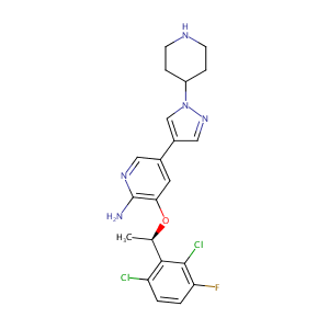 InChI=1S/C21H22Cl2FN5O/c1-12(19-16(22)2-3-17(24)20(19)23)30-18-8-13(9-27-21(18)25)14-10-28-29(11-14)15-4-6-26-7-5-15/h2-3,8-12,15,26H,4-7H2,1H3,(H2,25,27)/t12-/m1/s1