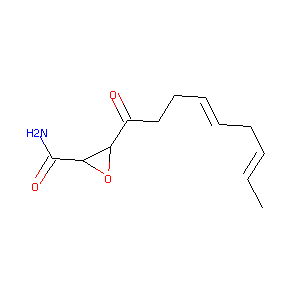 Helicocerin; Cerulenin, Cephalosporium caerulens; Oxiranecarboxamide, 3-(1-oxo-4,7-nonadienyl)-, (2R-(2-alpha,3-alpha(4E,7E)))-(9CI); (2R,3S)-2,3-Epoxy-4-oxo-7E,10E-dodecadienamide; (2R,3S)-3-((4E,7E)-Nona-4,7-dienoyl)-oxirane-2-carboxylic acid amide; (2R,3S)-3-((4E,7E)-nona-4,7-dienoyl)oxirane-2-carboxamide; (2R,3S)-3-[(4E,7E)-nona-4,7-dienoyl]oxirane-2-carboxamide; (2R,3S)-3-nona-4,7-dienoyloxirane-2-carboxamide; (2R,3S,E,E)-2,3-Epoxy-4-oxo-7,10-dodecadienamide; (2R-(2alpha,3alpha(4E,7E)))-3-(1-Oxonona-4,7-dienyl)oxirane-2-carboxamide; (2S)(3R)-2,3-Epoxy-4-oxo-7,10-dodecadienoylamide; (2S,3R)-2,3-epoxy-4-oxy-7,10-dodecadienoylamide; (2r,3s)-3-(nona-4,7-dienoyl)oxirane-2-carboxamide; 2,3-Epoxy-4-oxo-7,10-dodecadienamide; 2,3-Epoxy-4-oxo-7,10-dodecadienoylamide; 3-(1-Oxo-4,7-nonadienyl)oxiranecarboxamide; 3-[(4E,7E)-nona-4,7-dienoyl]oxirane-2-carboxamide; 3-nona-4,7-dienoyloxirane-2-carboxamide