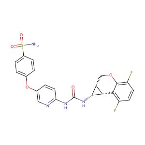 O=S(=O)(c1ccc(Oc2cnc(NC(=O)N[C@@H]3[C@@H]4COc5c(ccc(c5[<br />C@H]34)F)F)cc2)cc1)N