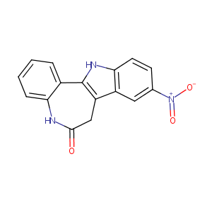 InChI=1S/C16H11N3O3/c20-15-8-12-11-7-9(19(21)22)5-6-14(11)18-16(12)10-3-1-2-4-13(10)17-15/h1-7,18H,8H2,(H,17,20)