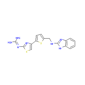 1S/C16H15N7S2/c17-14(18)23-16-22-12(8-24-16)13-6-5-9(25-13)7-19-15-20-10-3-1-2-4-11(10)21-15/h1-6,8H,7H2,(H2,19,20,21)(H4,17,18,22,23)