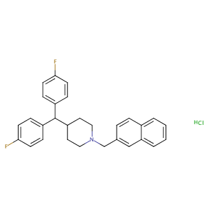 N1(Cc2cc3c(cc2)cccc3)CCC(C(c2ccc(cc2)F)c2ccc(cc2)F)CC1.<br />Cl