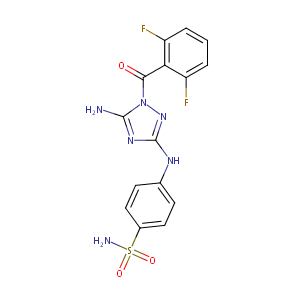 InChI=1S/C15H12F2N6O3S/c16-10-2-1-3-11(17)12(10)13(24)23-14(18)21-15(22-23)20-8-4-6-9(7-5-8)27(19,25)26/h1-7H,(H2,19,25,26)(H3,18,20,21,22)