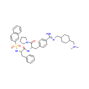 InChI=1S/C43H54N6O4S/c1-48(2)30-34-16-14-33(15-17-34)29-45-41(44)36-20-18-32(19-21-36)27-40(43(51)49-24-8-9-25-49)46-42(50)39(26-31-10-4-3-5-11-31)47-54(52,53)38-23-22-35-12-6-7-13-37(35)28-38/h3-7,10-13,18-23,28,33-34,39-40,47H,8-9,14-17,24-27,29-30H2,1-2H3,(H2,44,45)(H,46,50)/t33-,34+,39-,40-/m1/s1