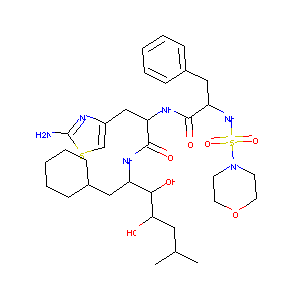CC(C)CC(C(C(CC1CCCCC1)NC(=O)C(CC2=CSC(=N2)N)NC(=O)C(CC3<br />=CC=CC=C3)NS(=O)(=O)N4CCOCC4)O)O