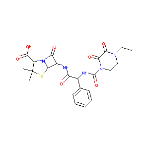 PIPC; Peperacillin; Peracin; Pipercillin; Pipracil; Pipril; PIPERACILLIN SODIUM; Piperacillin Monosodium Salt; Piperacillin anhydrous; Cl-227193; Peracin (TN); Piperacillin (INN); Piperacillin (anhydrous); Pipracil, Piper; T-1220; Tazocin (TN); Zobactin (TN); Zosyn (TN); (2S,5R,6R)-6-[[(2R)-2-[(4-ethyl-2,3-dioxopiperazine-1-carbonyl)amino]-2-phenylacetyl]amino]-3,3-dimethyl-7-oxo-4-thia-1-azabicyclo[3.2.0]heptane-2-carboxylic acid; (2S,5R,6R)-6-{[(2R)-2-{[(4-ethyl-2,3-dioxopiperazin-1-yl)carbonyl]amino}-2-phenylacetyl]amino}-3,3-dimethyl-7-oxo-4-thia-1-azabicyclo[3.2.0]heptane-2-carboxylic acid; (2S-(2alpha,5alpha,6beta(S*)))-6-(((((4-Ethyl-2,3-dioxopiperazin-1-yl)carbonyl)amino)phenylacetyl)amino)-3,3-dimethyl-7-oxo-4-thia-1-azabicyclo(3.2.0)heptane-2-carboxylic acid; 4-ethyl-2,3-dioxopiperazine carbonyl ampicillin; 6-(D-(-)-alpha-(4-Ethyl-2,3-dioxo-1-piperazinecarboxamido)phenylacetamido)penicillanicacid; 6beta-{(2R)-2-[(4-ethyl-2,3-dioxopiperazin-1-yl)carboxamido]-2-phenylacetamido}-2,2-dimethylpenam-3alpha-carboxylic acid