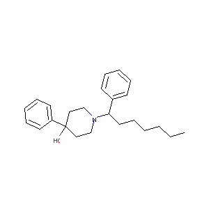 CCCCCCC(C1=CC=CC=C1)N2CCC(CC2)(C3=CC=CC=C3)O